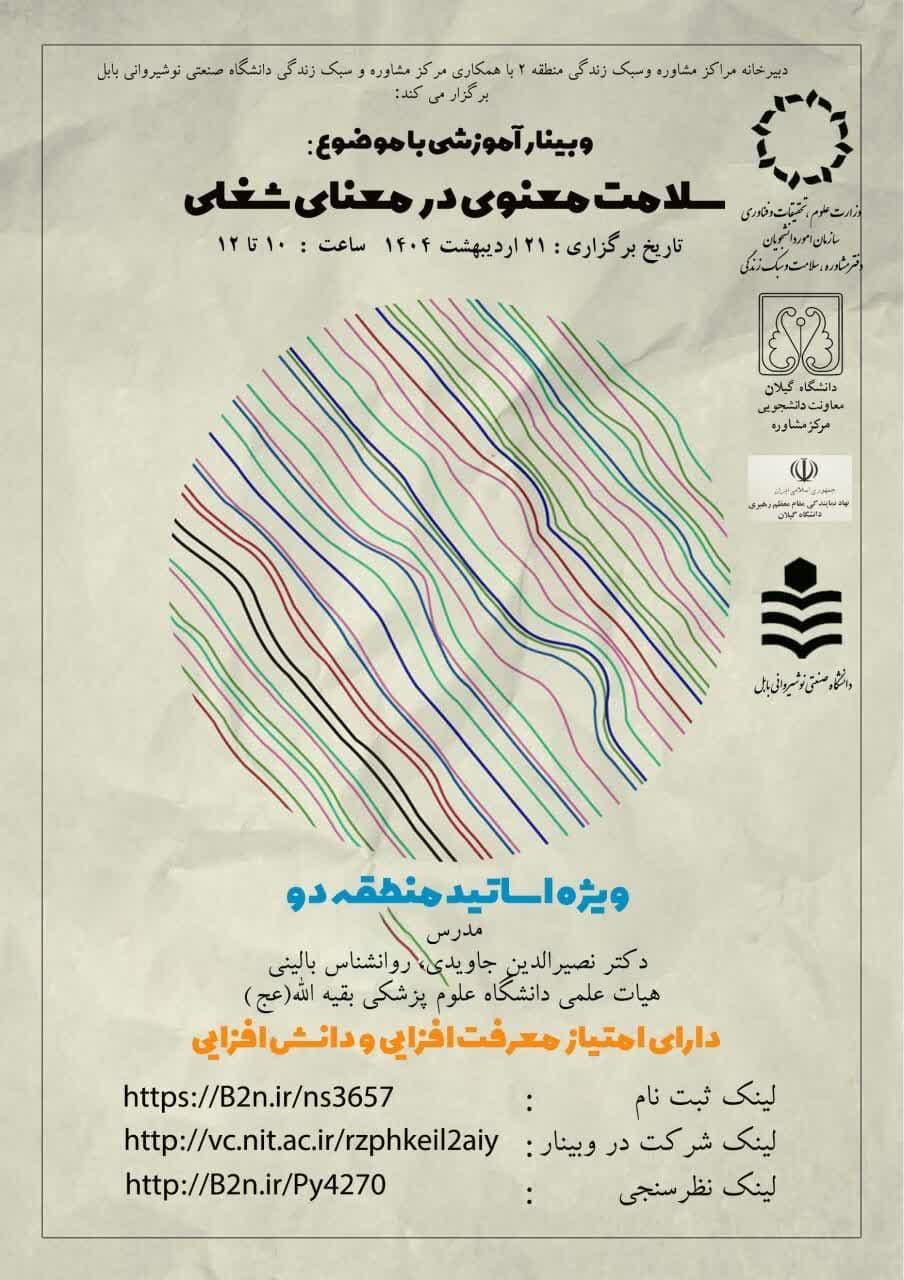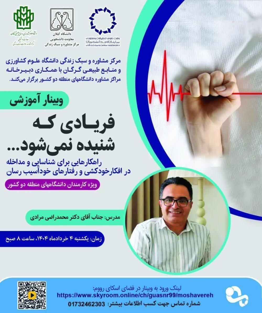 برگزاری وبینار آموزشی" فریادی که شنیده نمی شود... راهکارهایی برای شناسایی و مداخله در افکارخودکشی و رفتارهای خودآسیب رسان "ویژه کارمندان و کارشناسان دانشگاه های منطقه دو کشور